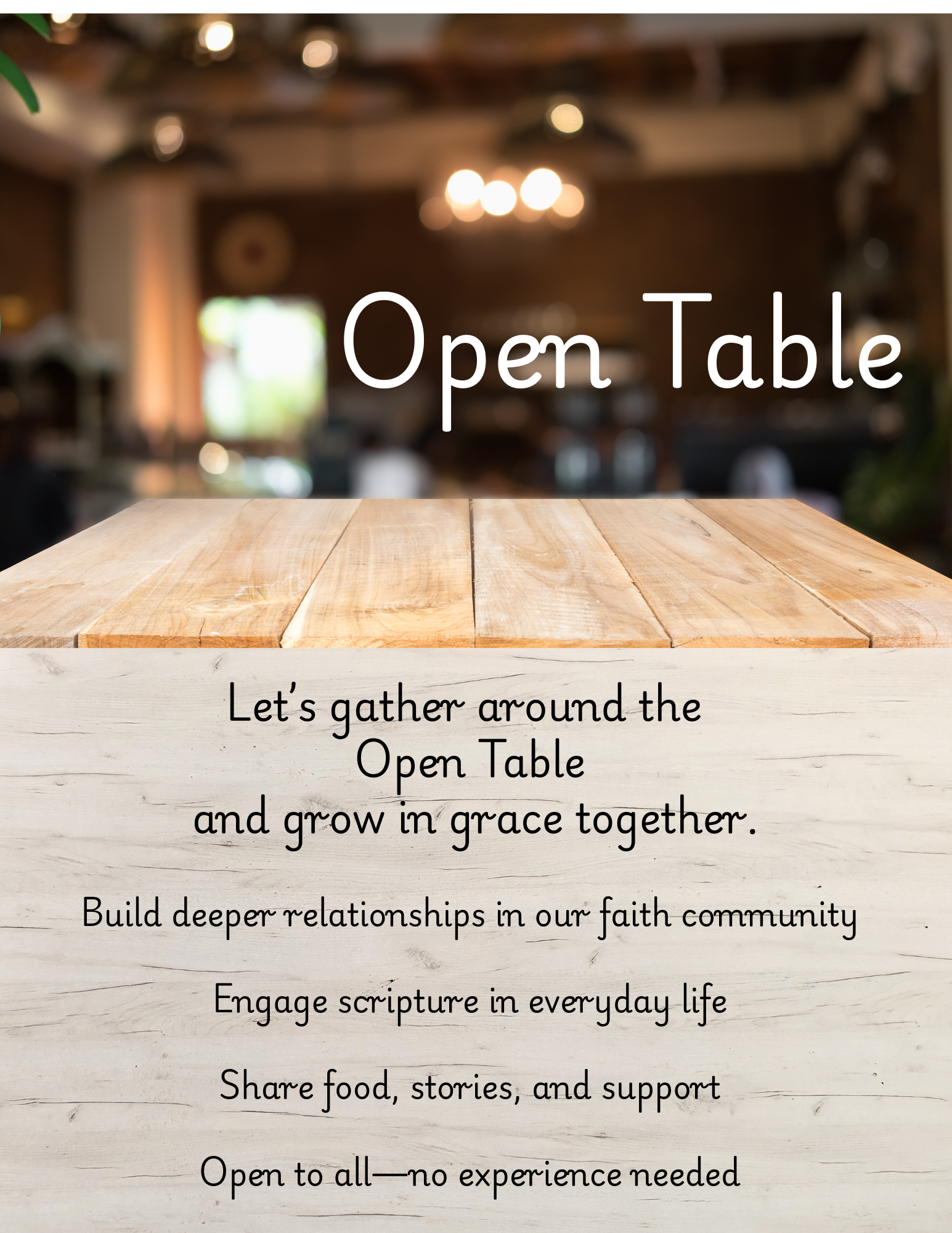 Groups meet to read contemporary theology and study and discuss together around an open table.